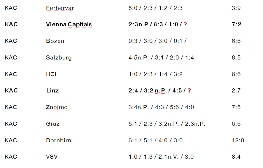 Linz 2:4 / 3:2 n.P. / 4:5 / ?