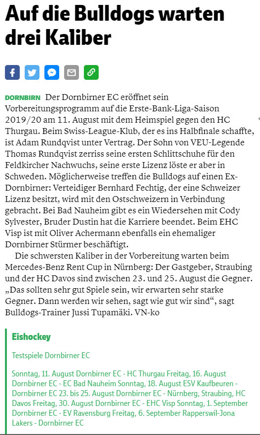 Vorbereitungsspiele: Bulldogs Dornbirn