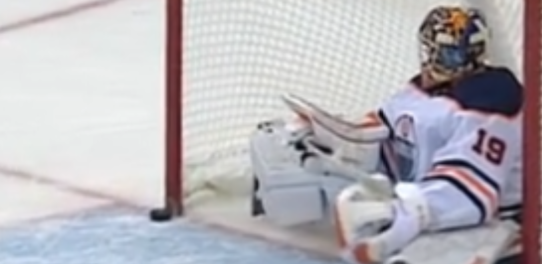 zuerst zwei fouls der Oilers die nicht gepfiffen werden, dann eine strafe gegen Coleman (die war ok), dann stochert McDavid nach einem schuss im 4 vs. 6 pp den puck zwischen Blackwoods beinen hervor der pfiff kommt (natürlich zu früh aber er war deutlich zu hören) gleichzeitig schiesst McDavid den Puck ins tor, good goal nach videobeweis. :cursing: