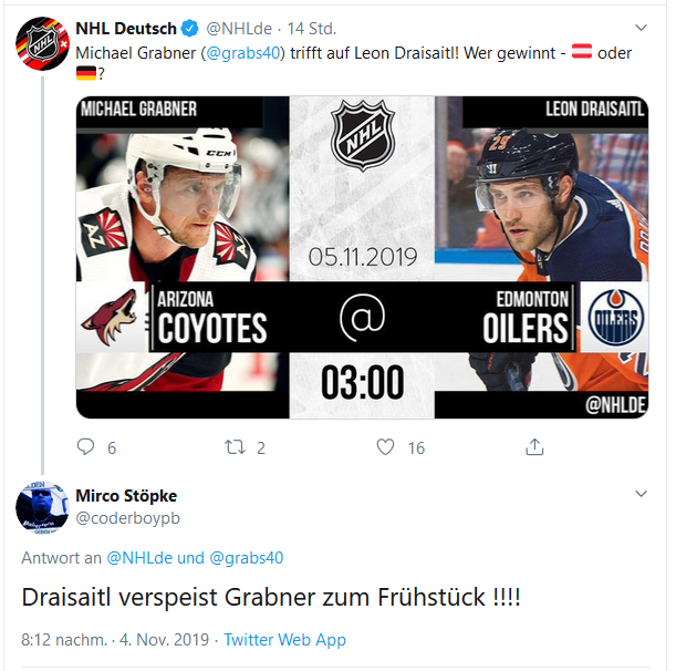 Und auch wenn ich der blaumeise natürlich generell recht gebe, aber wtf will Draisaitl da? 1h deke durch die Beine des Gegners oder was. 😂