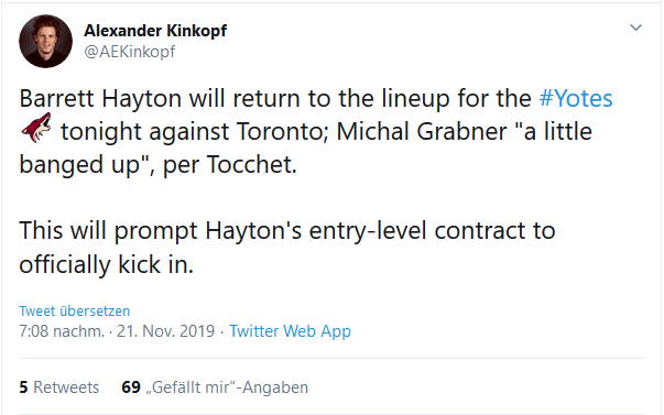 Über Grabner brauche ich wohl nichts zu schreiben - super Start, super präsent - passt mega in das System. Fans sowie Medien in Arizona sind auch ganz hin und weg vom Speed und seinem Gespür für Breaks.