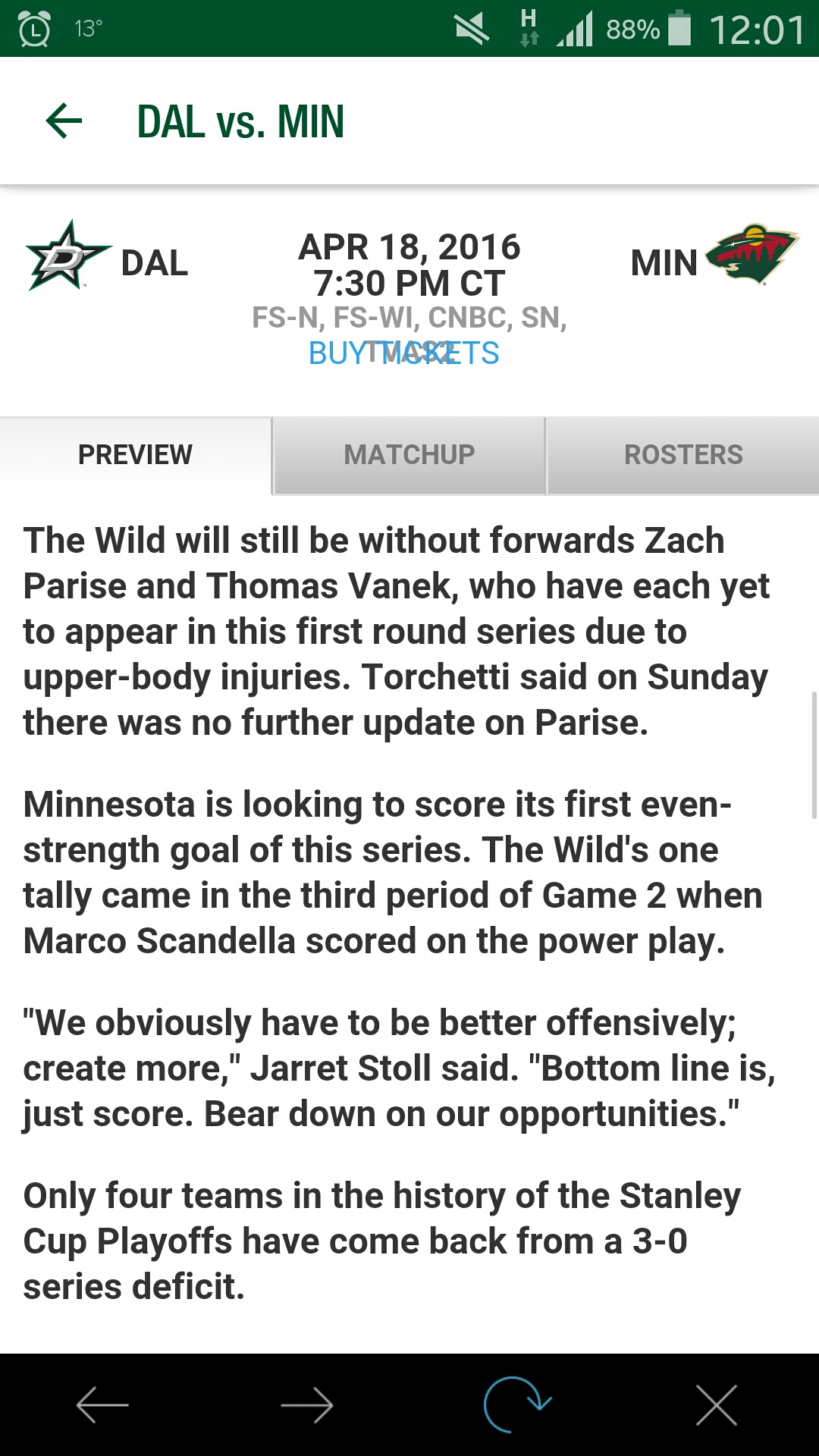 Quelle Priview aus der NHL app:
