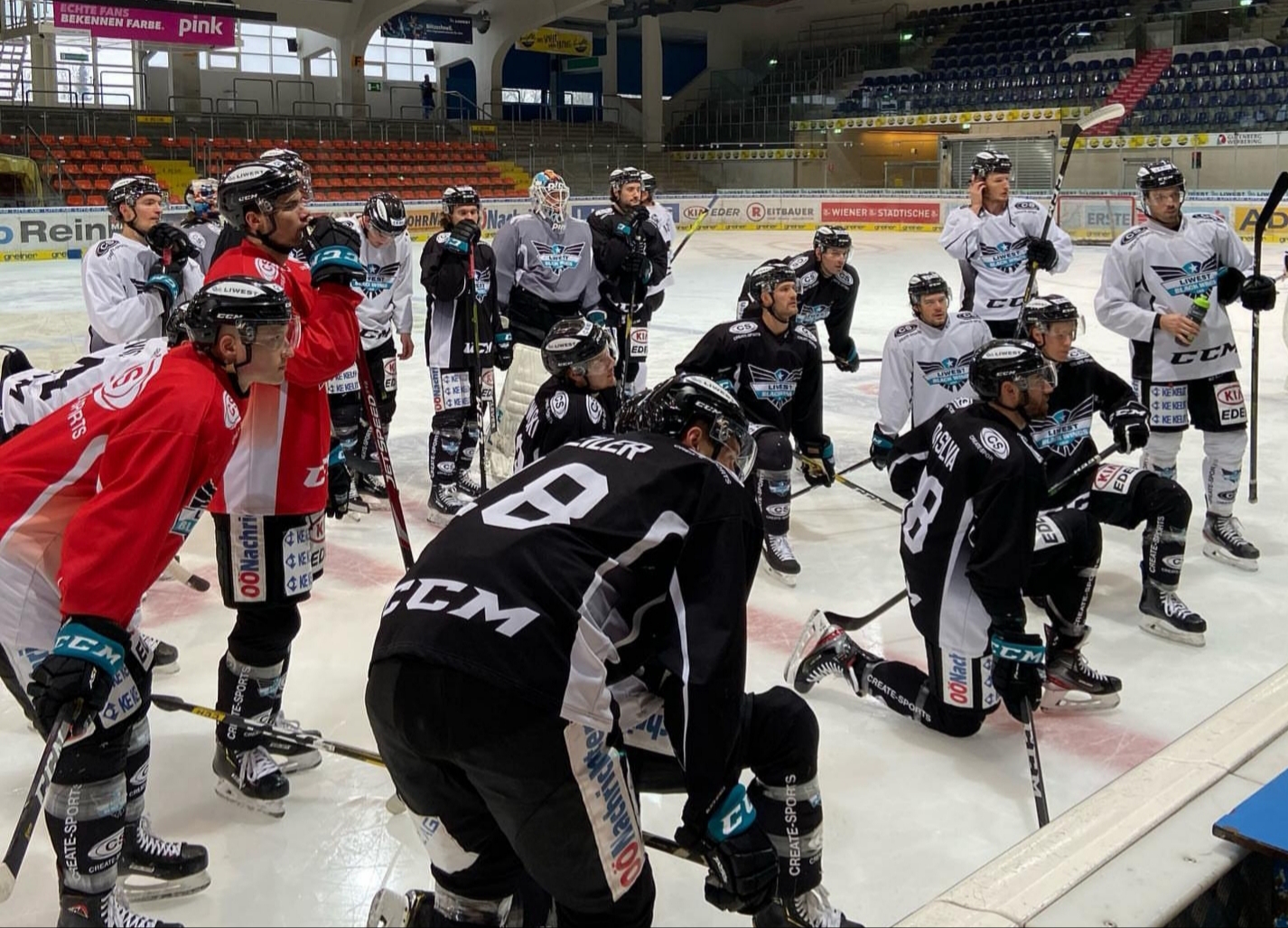 "Verletzungssorgen, die auch die Oberösterreicher zurzeit bestens kennen. Mark McNeill, Matt Finn, Julian Pusnik und Paul Mocher werden weiterhin nicht zur Verfügung stehen. Auch Marek Kalus ist noch etwas angeschlagen und wird erst kurzfristig entscheiden, ob ein Einsatz morgen möglich ist. Wieder mit an Bord ist Stammkeeper David Kickert"