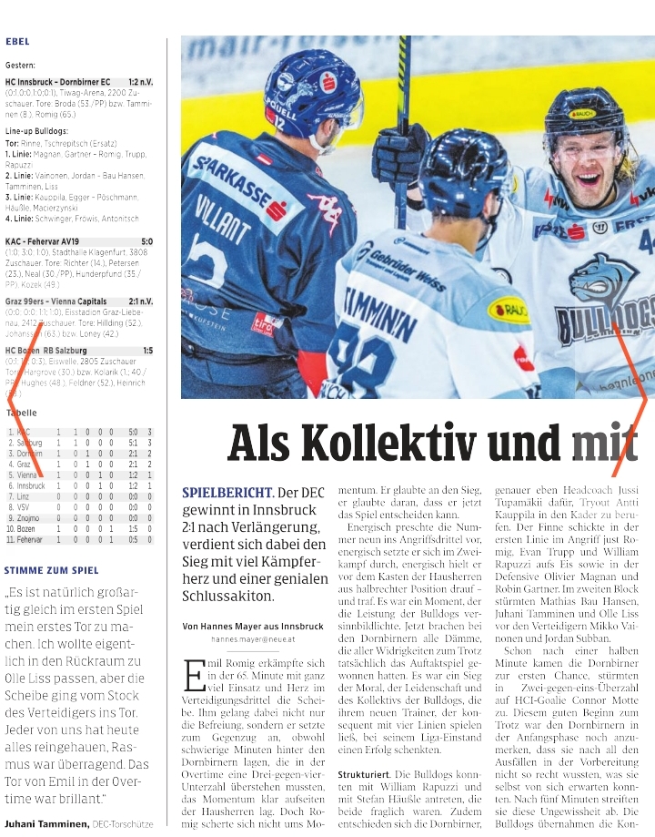 Leider die von starting six prognostizierte Kraxenpartie mit einem verdienten Sieger. Gratulation Bulldogs, um das eine auch sehr gefällige Tor besser.