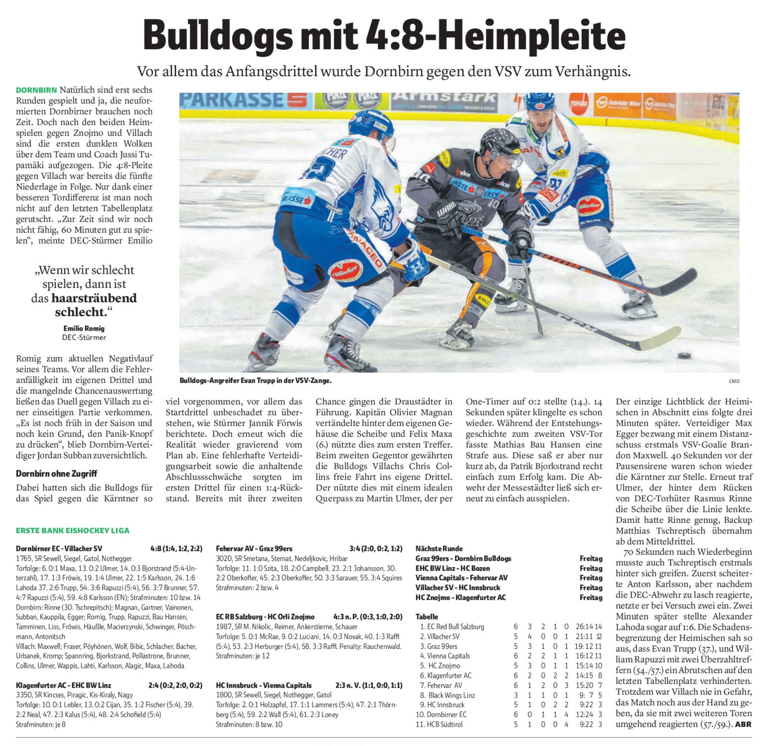6. R.: Dornbirner EC 'Die Bulldogs' - EC Panaceo Villacher SV