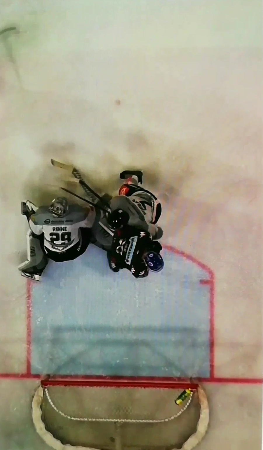 Hier übrigens ein Innsbrucker Tor, das diese Saison wegen Goalie-Interference nicht gegeben worden ist. In dem Fall könnte man eventuell von einer Gemeinheit sprechen. Aber bei Kalus? Keine Chance.