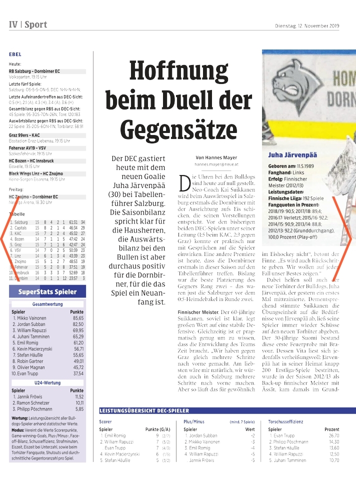 Medienberichte Dornbirner EC 'Die Bulldogs' 2019/20