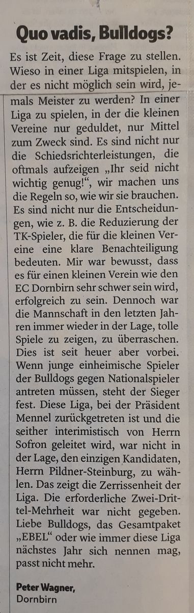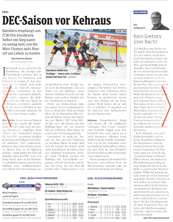 Weil Suikkanen noch nie einen Kader zusammengestellt hat. Er ist es gewohnt in Organisationen zu arbeiten, in denen es einen Verantwortlichen dafür gibt. Wer soll dies in Dornbirn sein ? Bitte sag jetzt nicht Kutzer :hilfe: