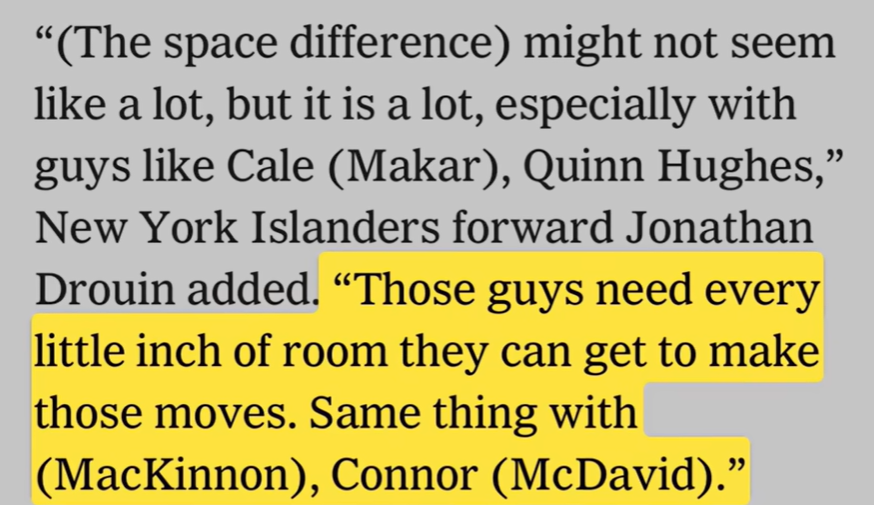 Ich find den Peking Vergleich im Artikel lustig, da waren die NHL Spieler halt nicht dabei. Die Größe ist halt deswegen relevant, weil der NHL zugesagt wurde, dass die Spiele auf einer Eisfläche stattfinden, die NHL Maße hat. Was daran so schwer war, das auch so zu bauen entzieht sich meiner Kenntnis.