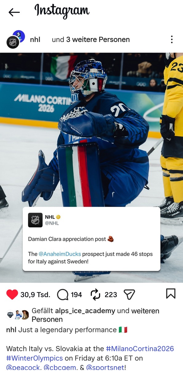 Schade dass sich Italien für ihr aufopferndes, beherztes Spiel nicht mit 1 Punkt belohnen konnten. Dennoch können sie erhobenes Haupt vom Eis gehen und sehr stolz auf diese Leistung sein.