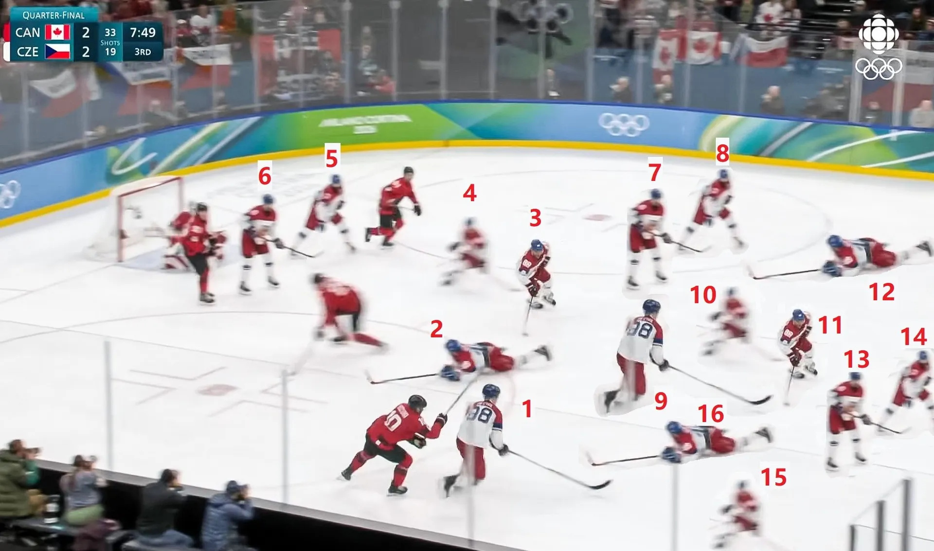 Einfach ohne Worte das ganze, die Bank der Kanadier und selbst die Zuschauer sind anscheinend in Schockstarre verfallen, wegen des möglichen Ausscheiden der Superstars.