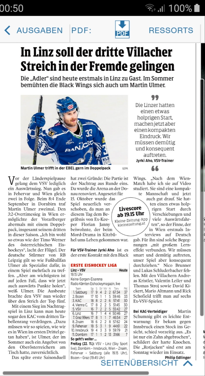 Ein Heimsieg würde mal wieder gut tun. Man könnte die Caps, den VSV überholen, und den KAC einholen (bei dann einer Partie weniger).