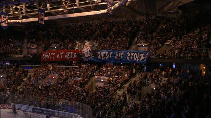 In der ersten Drittelpause wurde dann zum Parallelspiel nach Brno geschalten und der Kommentator in der Halle in Brno durfte kurz zu seinem Spiel einen Kommentar abgeben
