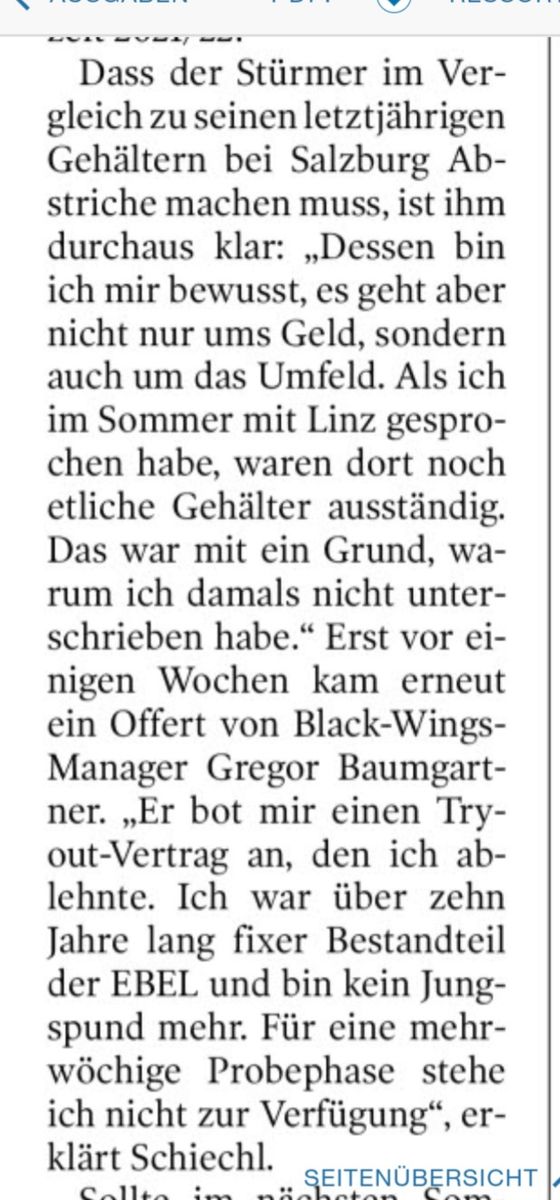 Vor allem war er ja selbst verschnupft, als er (aus seiner Sicht) respektlos behandelt wurde. Hat er damals nicht gesagt, dass er enttäuscht sei, dass man sich gegenüber renommierten Spielern "so verhält"? Einerseits beschwert man sich, weil die "österreichischen Spieler so wenig zählen", andererseits legt man einem Spieler wie Schiechl nur einen Tryout-Vertrag vor.