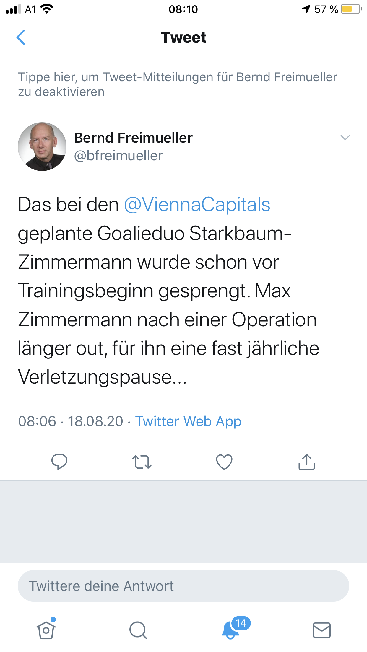 Ich hoffe er ist nicht zu lange verletzt, bis Saisonstart ist es noch mehr als 1 Monat, und dann ist es die Frage, wie lange er dann noch nicht spielen kann. Wahrscheinlich müsste Starkbaum jedes Spiel im Tor stehen, wie damals auch JPL. Ob Starkbaum dann trotzdem seine Leistung halten kann, das ist die andere Frage.