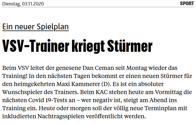 Es werden jedem Verein ganz einfach die Einnahmen fehlen. Die Kantinen sind schon geschlossen was aber bald nicht mehr ins Gewicht fällt denn vermutlich drohen Spiele ohne Zuseher. Man kann sich heuer noch so bemühen,ich glaube nicht daß nur ein Verein positiv Bilanzieren wird deshalb wird man sich davor hüten noch weitere Budgetposten zu öffnen. Das ganze minus darf man dann in den nächsten Saisonen ausbaden. Fakt ist halt das man beim VSV mit einem viel positiven Szenario für den Verein gerechnet hat was sich unweigerlich auswirken wird.
