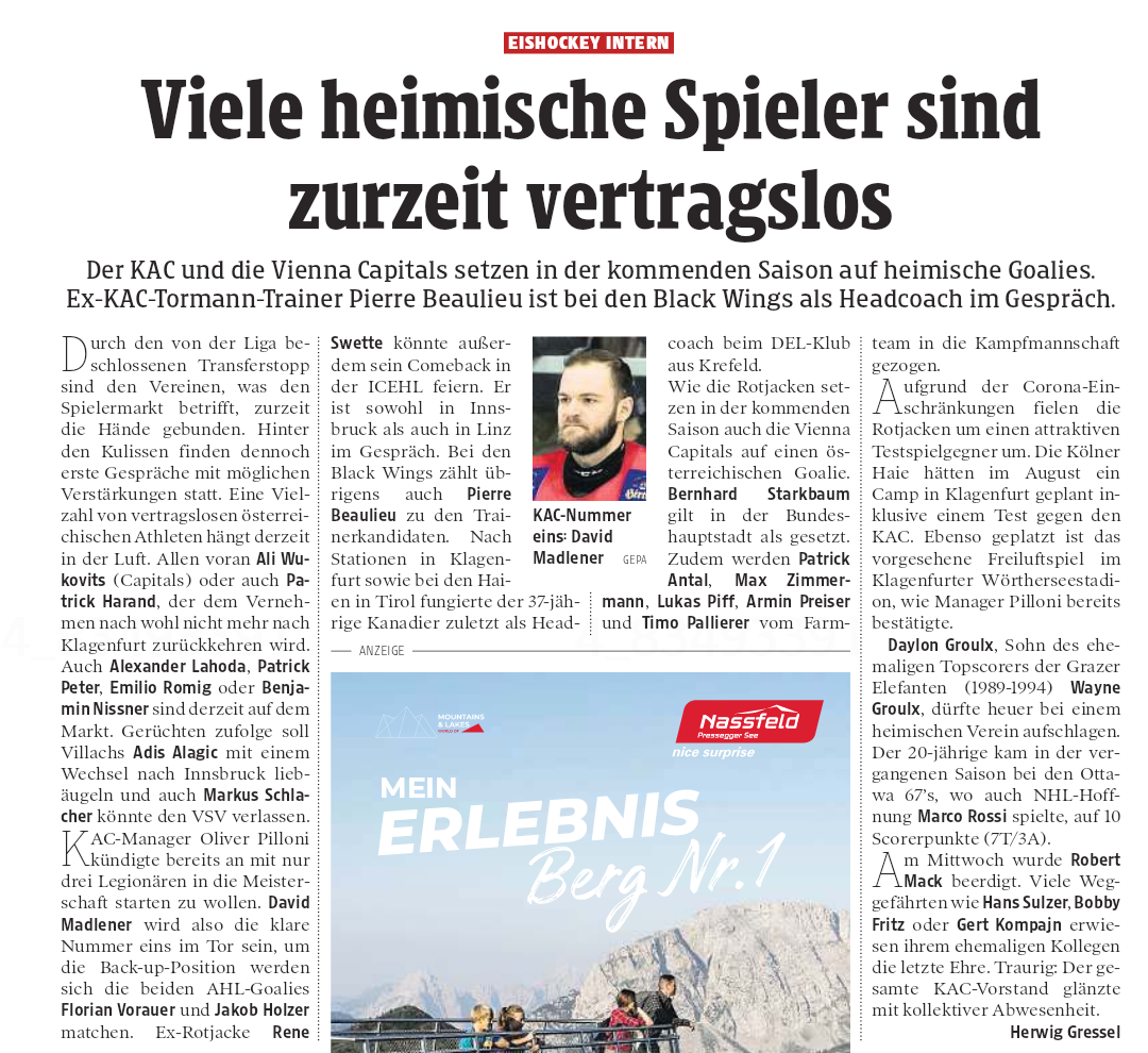 Hier noch ein link zu eigenem Artikel vom Standart zur Eishockeyliga.