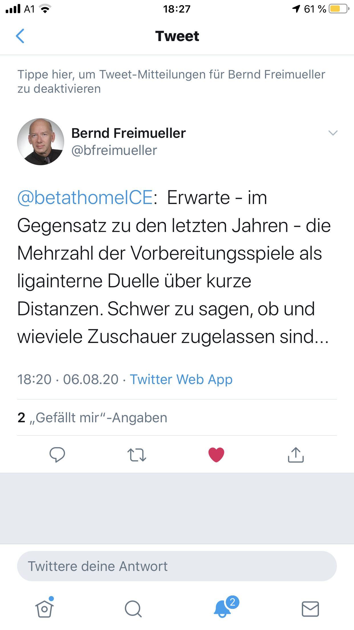 Ich bin sicher kein Freimüller Hater, aber seine Posts seit Liga Ende haben schon einen "bitte vergesst mich nicht vibe" - konkreter Informationsgehalt meist in homöopathischen Dosen.