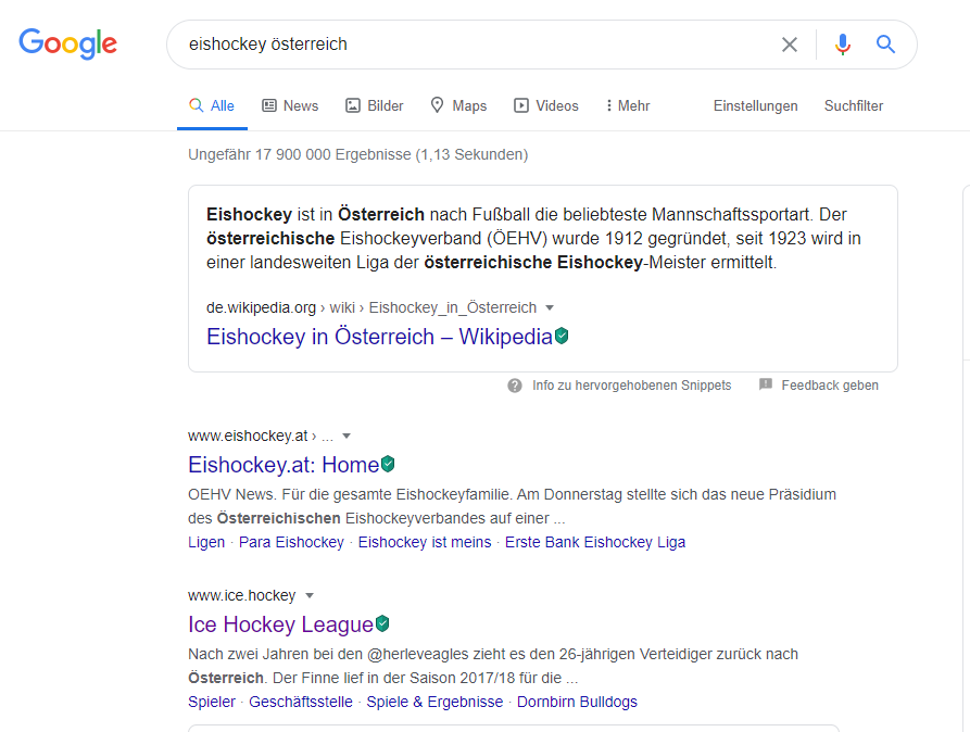 Habe gerade ice hockey gegoogelt und erstes Ergebnis ist die Liga Seite. Habe das natürlich zuvor noch nie gegoogelt.