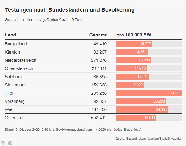 Dort zeigt sich, dass Kärnten auch die niedrigste Quote der positiven Tests hat.