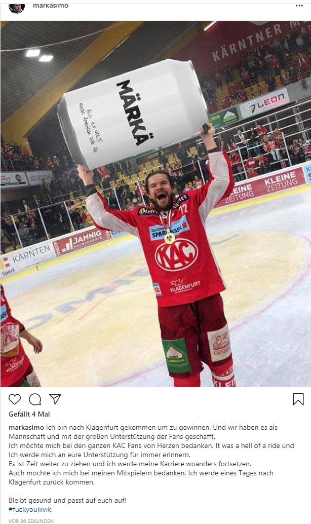 Manche Dinge bleiben halt leider spielentscheidend in Erinnerung. Zuerst das leere Tor nicht machen, dann die saudumme Strafe ziehen. Anders rum wie im Playoff Jahr davor und der enthusiastische KAC Fan ist schon wieder verliebt.