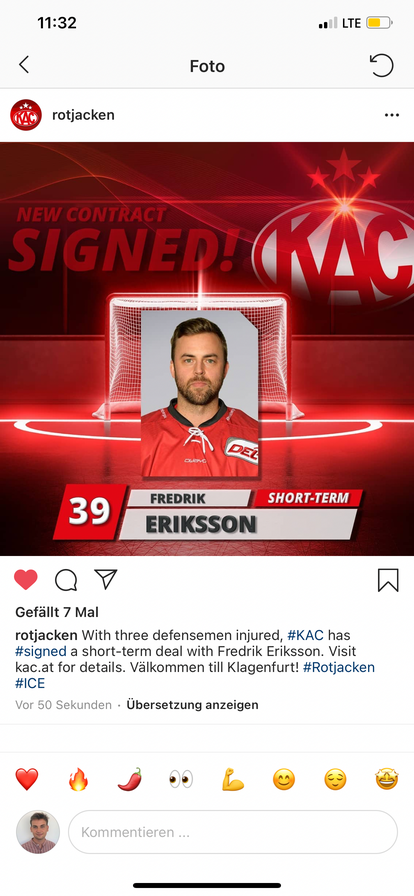 Eriksson kann zumindest PP, sehr kluger Spieler mit gutem hockey sense. Den hätte der KAC schon vor Jahren brauchen können. Zumindest ein Europäer, der sich nicht lange einleben und umgewöhnen muss.