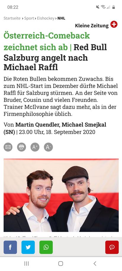 In der heutigen Krone steht das der Kader bald komplett ist! Schofield ist seit gestern in Salzburg und Chorney wird morgen erwartet! Was ich mich frage ist ob noch nachjustiert wird wenn Peterka und Schütz wieder in München sind? Willst du heuer Meister werden ist es meiner Meinung nach fast ein muss noch jemanden zu verpflichten denn mit so vielen jungen wird es nicht gehen! Einen oder 2 gestandene Spieler wird es noch brauchen!