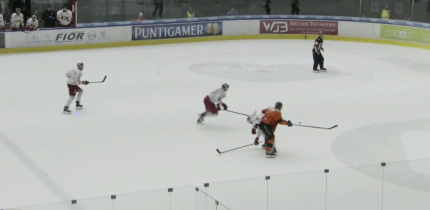 Für mich wie gesagt viel schlimmer, dass der Referee zunächst die klaren sechs Spieler am Eis abpfeifen will, um dies dann doch nicht zu tun. Und es war leider eine 'too many players on ice' Szene, wo alle Salzburger gedacht haben, sie gehören in diesem Moment auf das Eis.