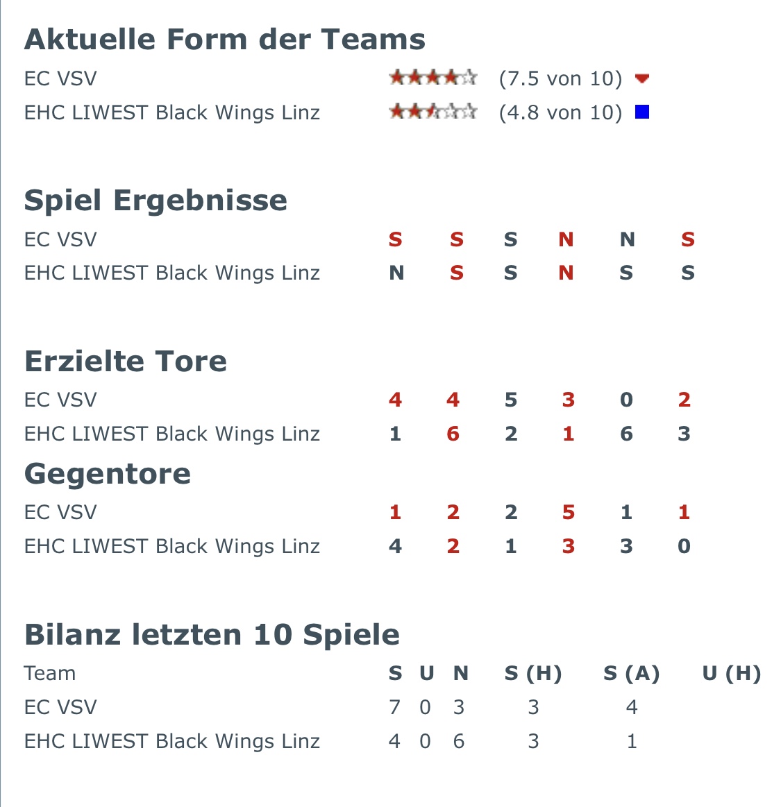 Die Tendenz der letzten 10 Partien, also die Momentanform sprechen jedoch für den VSV.