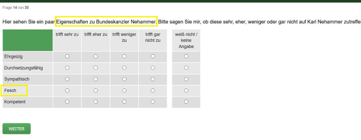 Die Antworten in allen Kategorien außer "fesch" waren für den Bundeskanzler niederschmetternd.