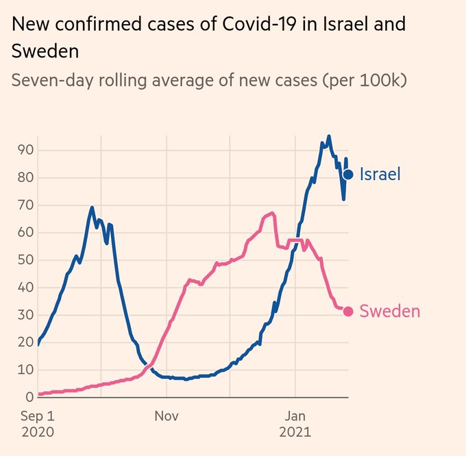 Der Vergleich zwischen Schweden (weniger streng) und Israel (sehr strikt) fällt auch nicht so richtig deutlich zugunsten von Israel aus