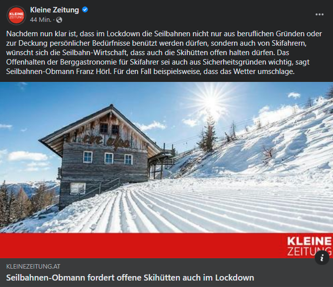 Die Schigebiet-Diskussion verstehe ich auch nicht, welche Schigebiete haben denn geöffnet? Ich dachte Lockdown sei Lockdown?