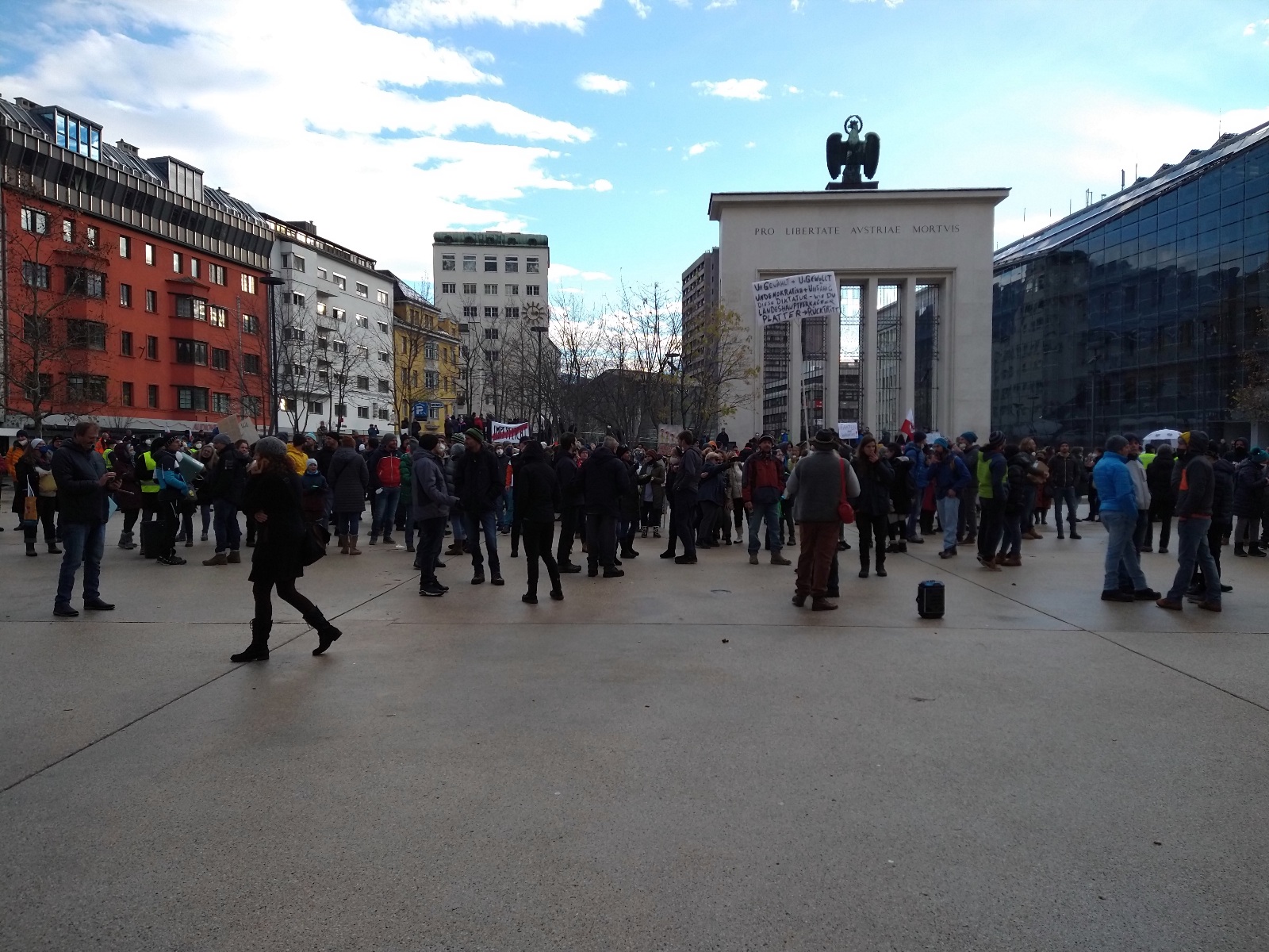Vom dritten Stock ins Parterre und dann 300 Meter zum Landhausplatz latschen und dann um 3 Uhr am Nachmittag "Freiheit" und "Widerstand" schreien und eine liebevoll bemalte, leicht ramponierte Papptafel in die Höhe zu halten, war wohl zu früh und zu viel des Aufwands.