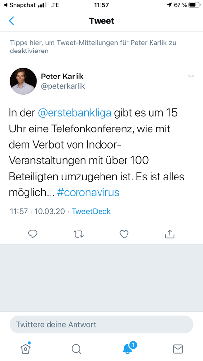 Entscheidet jetzt die Liga? Ob man ohne Publikum spielt, meine ich.
