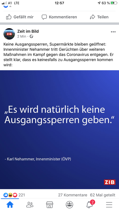 Typisch Österreich, irgendeiner schreibt etwas auf Facebook und alle Glaubens und Handeln danach, wenn aber am ORF davon gredet wird Soziale Kontakte zu meiden und dergleichen wirds gekonnt ignoriert ....