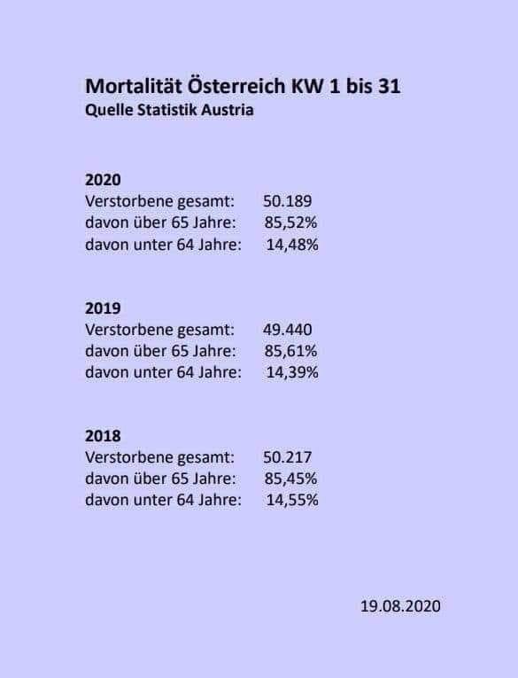 In Wahrheit beweist das nicht viel. Wir können zB lange darüber streiten, wie viele Leute im ersten Hj. 2020 in Österreich gestorben sind an gar nicht oder unzureichend versorgten Krebsleiden oder Herz-Kreislauferkrankungen, die unter anderen Umständen medizinisch gut versorgt gewesen wären.
