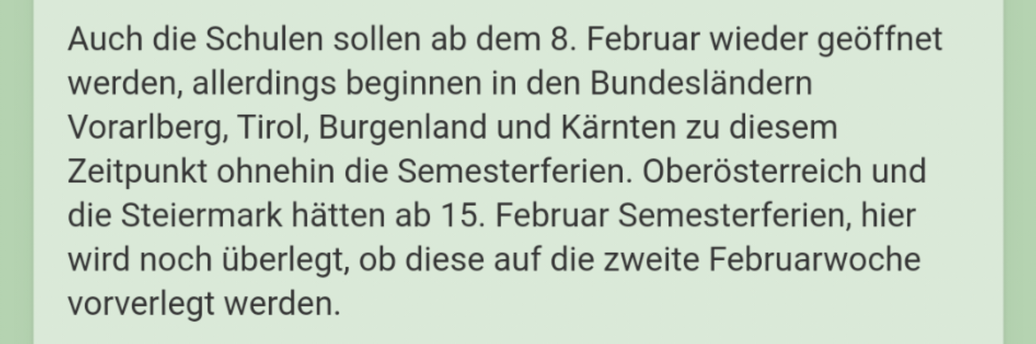 Bezüglich Ferien: warum gehts nicht, dass die Kinder Österreicherin in der ersten feber-Woche in die Ferien gehen. Es ist eh lockdown, vor den Urlauberströmen braucht man sich also nicht fürchten und nach den Ferien Sperr Ma wieder auf. ![]()