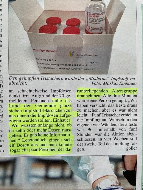 5 oder 6 gehen sich beim Biontech Impfstoff aus, 10 oder eben mehr bei Moderna... das eigentlich schlimme ist das sie nicht mehr als 7 Dosen bekommen....