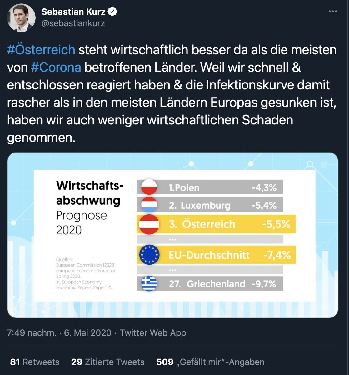 Am 13. Juni 2020 hatte Kurz erklärt, dass die "gesundheitlichen Folgen der Krise überstanden" sind und er sich jetzt um die Wirtschaft kümmert. Und das ist das Ergebnis seiner kümmerlichen "Bemühungen".