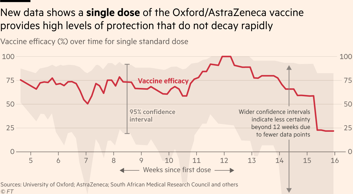 NEW: fresh data from trials in Brazil, South and the UK shows the Oxford/AstraZeneca vaccine is highly effective with a 12 week gap between doses.