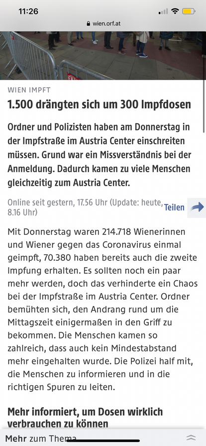 Angeblich kommen in Wien bis zu 20% nicht zu ihrem Impftermin (und nur wenige sagen ab).