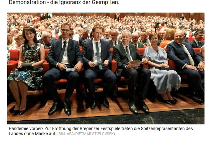 Das Foto stammt wie man hier auch lesen kann, von den Bregenzer Festspielen, wo es laut Veranstalter keine Maskenpflicht gibt. (siehe Text unter dem Foto)