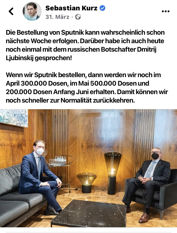Anders rum. Hätte Kurz damals Sputnik gekauft, wären mittlerweile schon viel mehr geimpft.