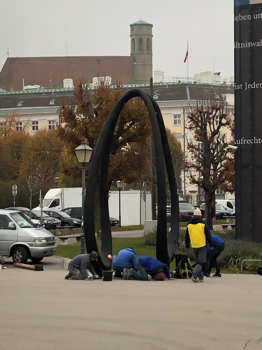 Dieses Objekt hat Nationalratspräsident Sobotka auf dem Heldenplatz vor dem Ausweichquartier des Parlaments aufstellen lassen.