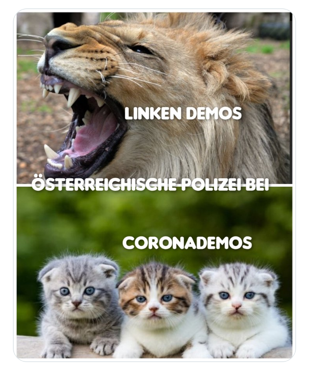 Was ich nicht verstehe ist, dass der Pürstl gesagt hat die lage war unter Kontrolle. ABER er war nicht möglich die Demo in der Innenstadt aufzulösen weil es drei waren. Stellen sich für mich zwei Fragen wie ist es möglich, dass Absperrungen überrannt werden und hat die österreichische Polizei keine Wasserwerfer?