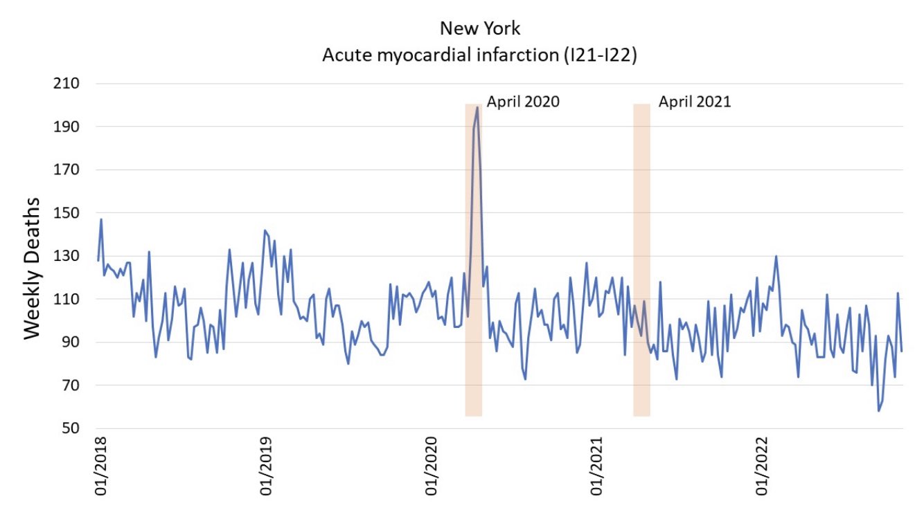 "Dargestellt die wöchentliche Todesfälle durch akute Herzinfarkte im Bundesstaat New York.