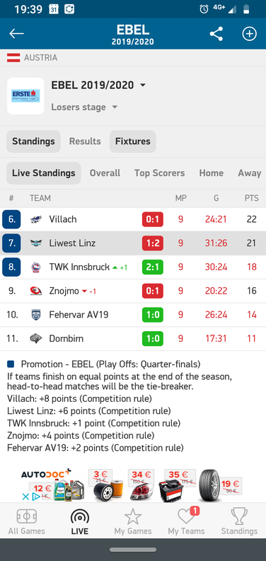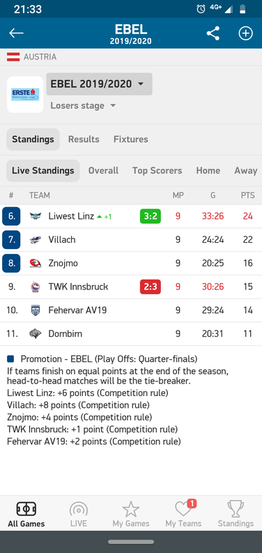 In Villach MUSS dann Minimum 3 Punkte Sieg her. Znojmo "kann" heute noch verlieren und wird ebenfalls am WE gas geben