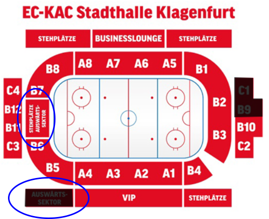 Das gibt es nur in Salzburg, wird auch bei uns nicht gehen. Oder hast du es schon erlebt, dass bei uns ein Sektor für Awayfans aufgemacht wird? Du kannst dich höchstens zu den KAC Fans stellen, da würde ich aber die wings Dress zuhsuse lassen und würde bei einem wings Tor nur in mich hinein jubeln!