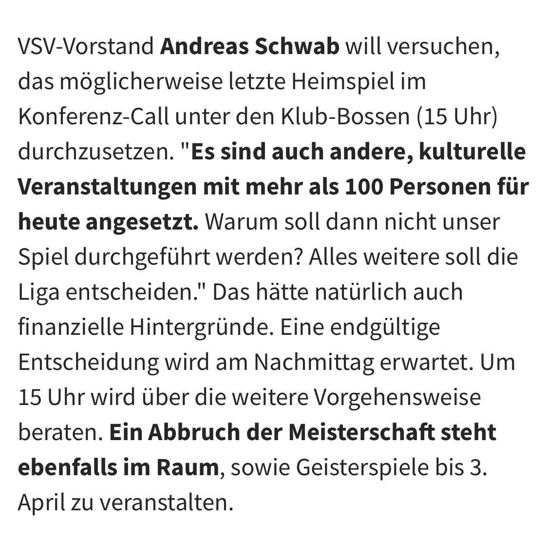 Meisterschaft beenden und den VSV zum Meister erklären. Das ist die einzige logische Alternative :thumbup: