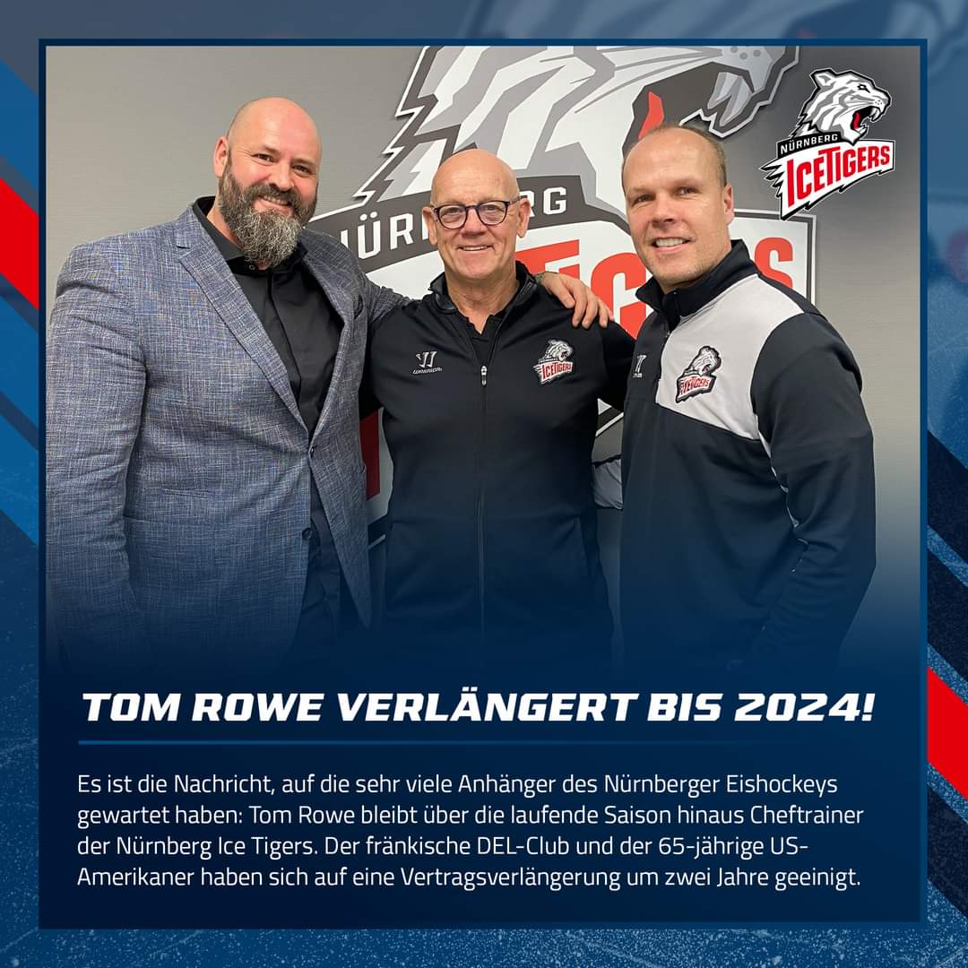 Es ist die Nachricht, auf die sehr viele Anhänger des Nürnberger Eishockeys gewartet haben: Tom Rowe bleibt über die laufende Saison hinaus Cheftrainer der Nürnberg Ice Tigers. Der fränkische DEL-Club und der 65-jährige US-Amerikaner haben sich auf eine vorzeitige Vertragsverlängerung um zwei Jahre bis zum Ende der PENNY DEL-Saison 2023/24 geeinigt.